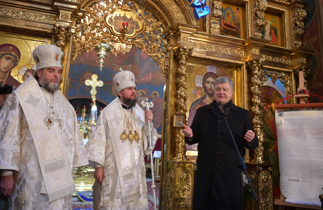 Президент нагадав всі етапи процесу створення Православної Церкви України. Він зауважив, що переговори з цього питання зі Вселенським Патріархатом проводилися тривалий час. Петро Порошенко особливо подякував Вселенському Патріарху Варфоломію за рішучість, сміливість, віру і мудрість, які Його Всесвятість продемонстрував у вирішенні цього питання. «Незважаючи на шалений тиск з боку Російської Федерації – країни-агресора, прямі погрози, погрози йому, погрози церкві, він це зробив», - сказав Петро Порошенко.